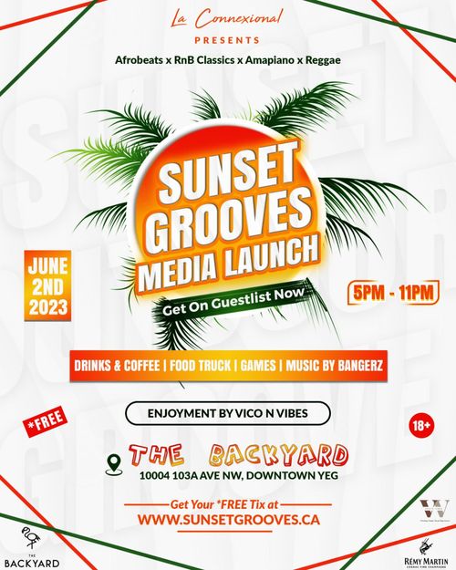 Join us on Friday, June 2nd, for the media launch of Sunset Grooves – Alberta's premier open-air sunset musical and cocktail experience. This unique event series, curated by La Connexional, promises Afrobeats, RnB, House, Amapiano, Latin, and Groovy music lovers unforgettable experiences under the setting sun.